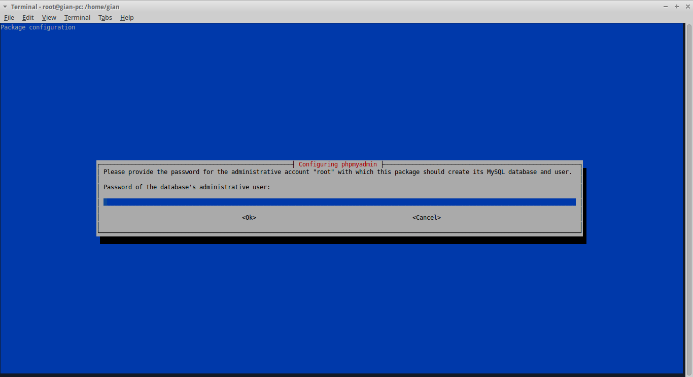8.jika semua sudah terisntall maka kita install phpmyadminya dengan cara apt-get install phpmyadmin